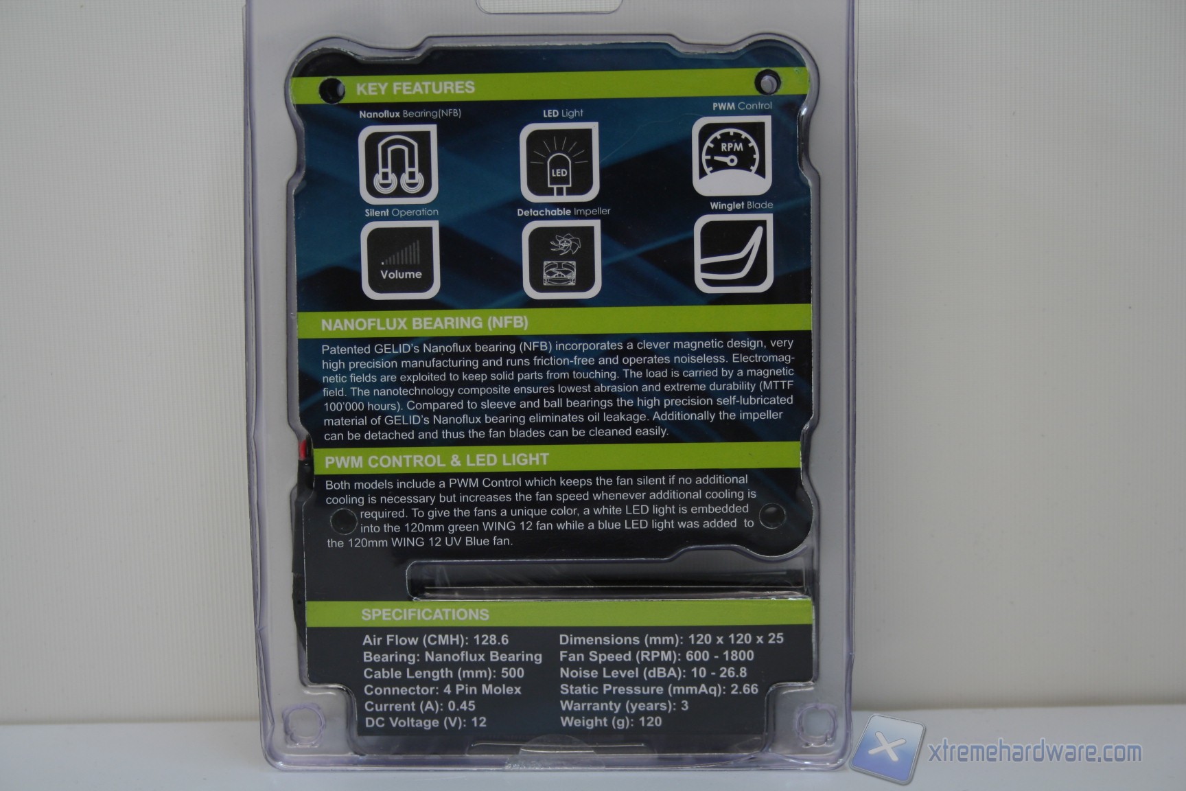 Gelid, al fine di rendere più completo questo test, ci ha gentilmente fornito il suo modello “Wing 12PL”, che si differenzia dalle altre per un design ricercato, una colorazione acquamarina trasparente delle sette pale molto curata, prestazioni complessive più che soddisfacenti ed infine un motore con tecnologia NanoFluxBearing. Procediamo ad elencarne le features.