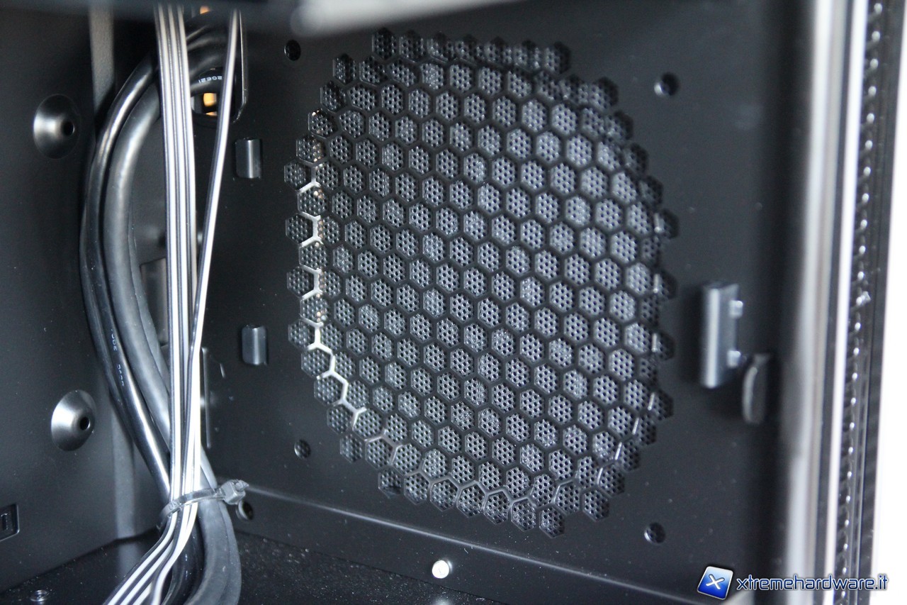 In basso a destra vi è l'alloggiamento per la ventola da 120mm in immissione ed un vano in cui potrà essere istallato un SSD da 2.5”.